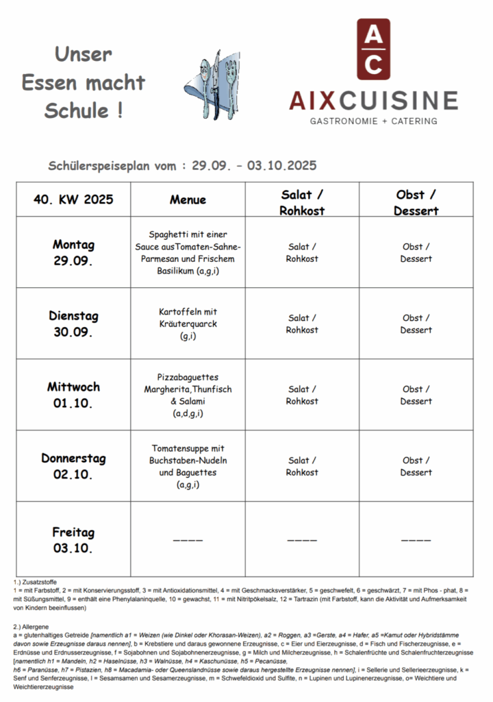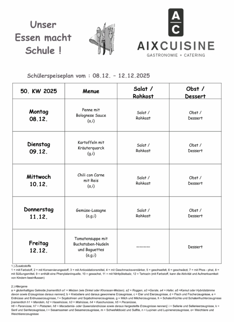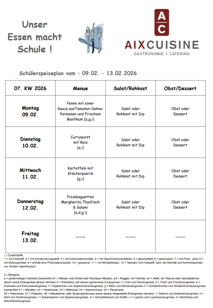 Mensaplan Liebe Eltern,hier finden Sie den aktuellen Speiseplan! Sie finden die Speisepläne auch vor beiden Eingängen der Mensa. Herunterladen