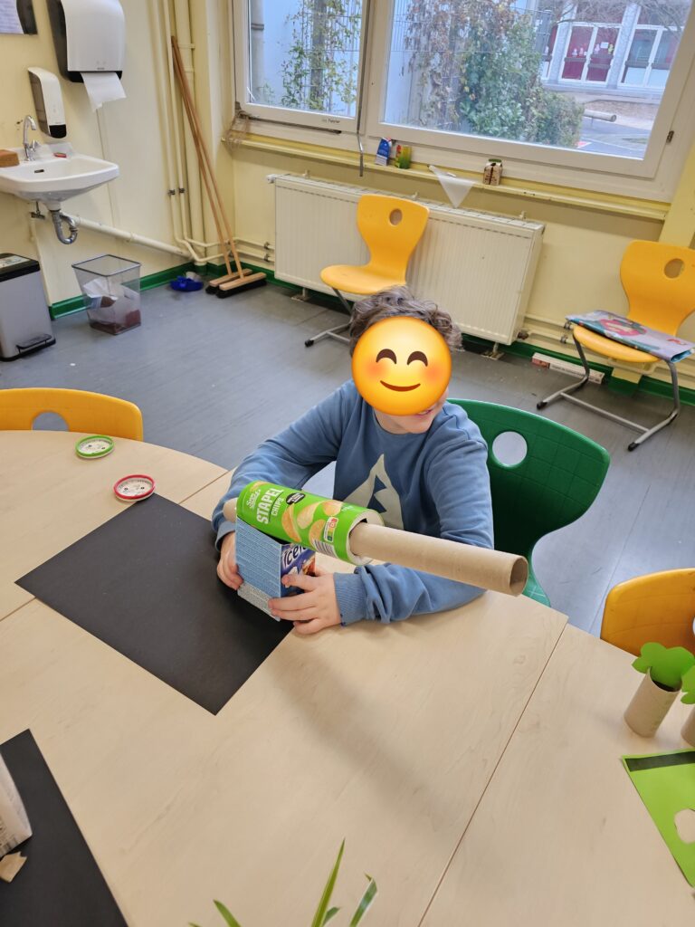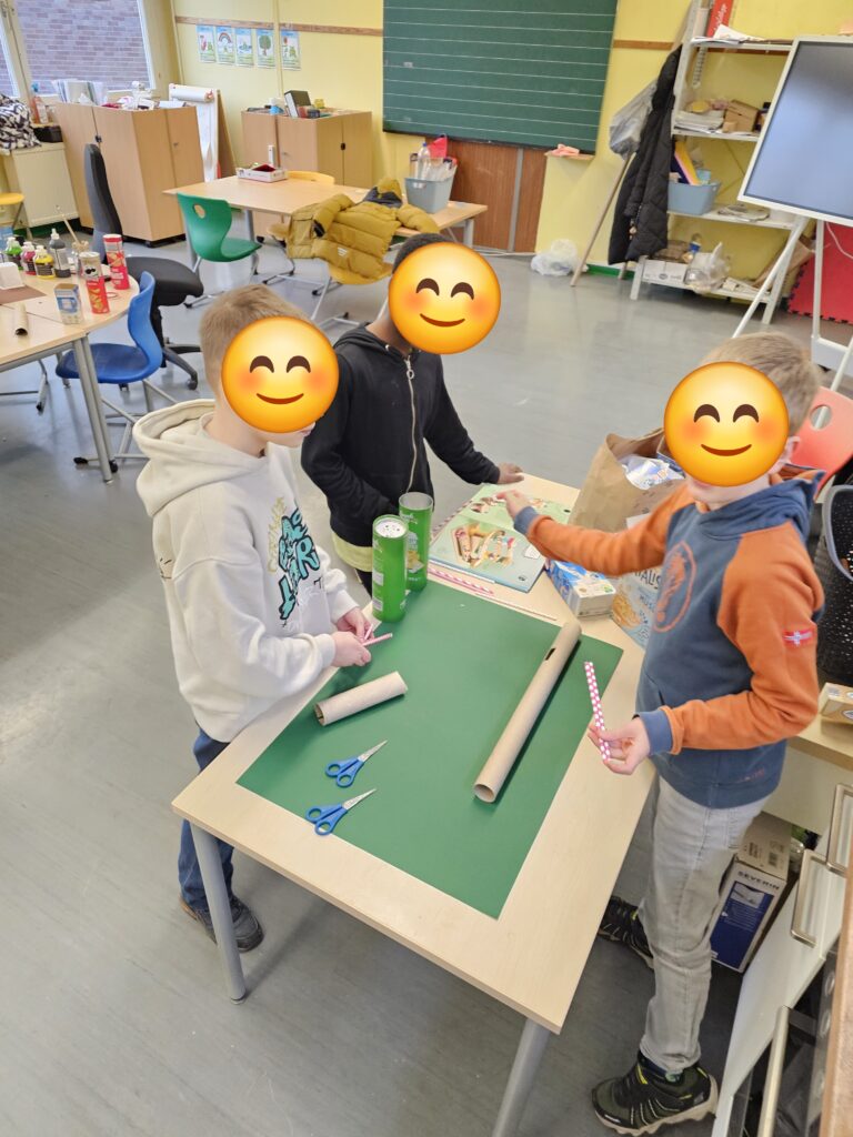 Wir gestalten aus kleinen Dosen, leeren Saft- sowie Milchtüten und Zewa- oder Toilettenpapierrollen, unsere eigenen Kugelbahnen.