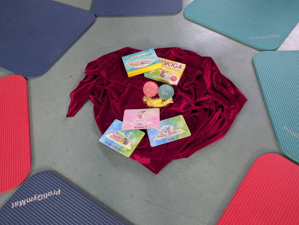 Oohm – so startet jeden Mittwoch unsere Yoga AG. Mit Entspannung, Igelball-Massagen, Traumreisen und Mandalas bringen wir Ruhe in den sonst oft so hektischen Alltag. Hier lernen die Kinder mit viel Spaß und Leichtigkeit verschiedene Yoga-Übungen wie die „Katze“, die „Kuh“, den „herabschauenden Hund“ oder das „Krokodil“ kennen. Zudem liegt der Fokus auf dem achtsamen Atmen, sodass die Kinder eine weitere Technik an die Hand bekommen, um entspannen zu können.