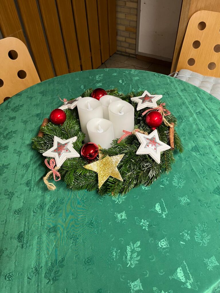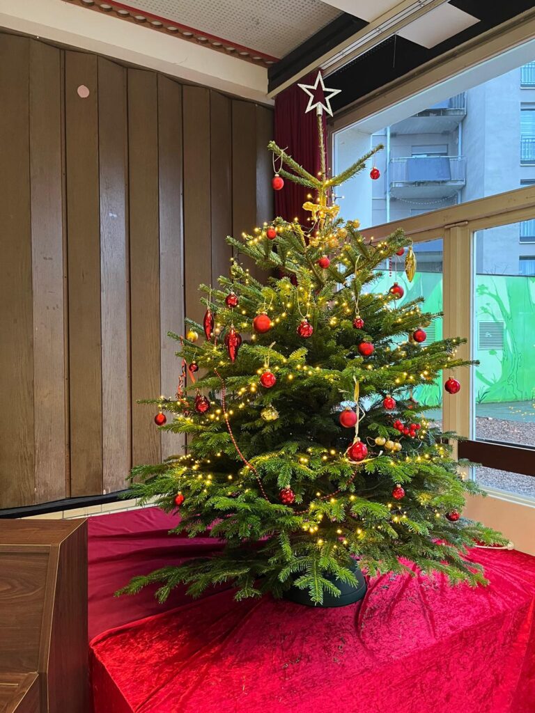 In der Adventszeit treffen wir uns regelmäßig unter dem Tannenbaum in unserer Aula. Hier singen wir gemeinsam Weihnachtslieder, sagen Gedichte auf und genießen die gemütliche Atmosphäre unter dem Tannenbaum.